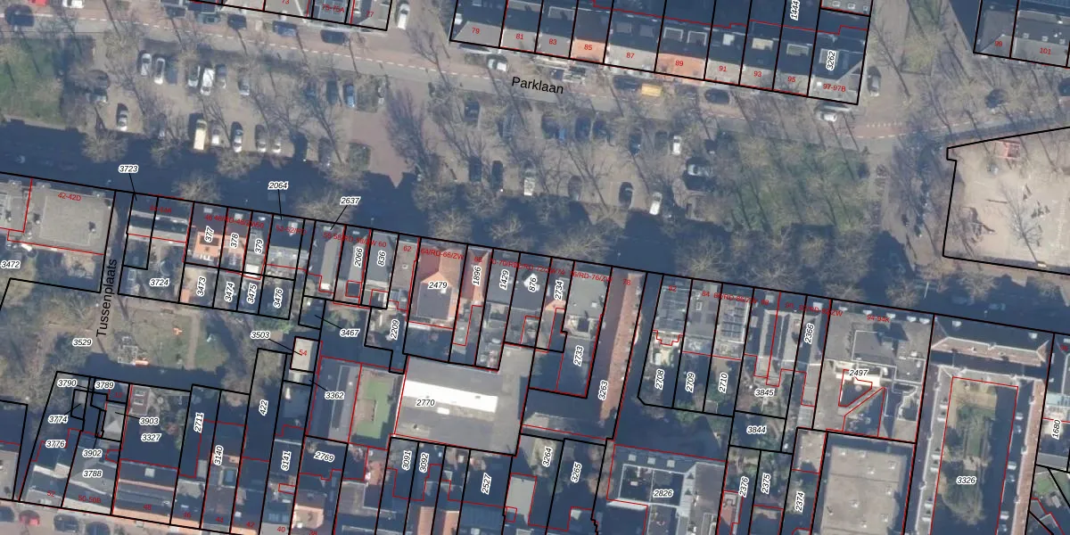 Parklaan 72-ZW is gelegen op kadastraal perceel HLM01B876. Deze kadastrale aanduiding is uniek en wordt gebruikt door het Kadaster om eigendomsrechten en andere zakelijke rechten vast te leggen. Het perceel maakt onderdeel uit van de kadastrale gemeente Haarlem.