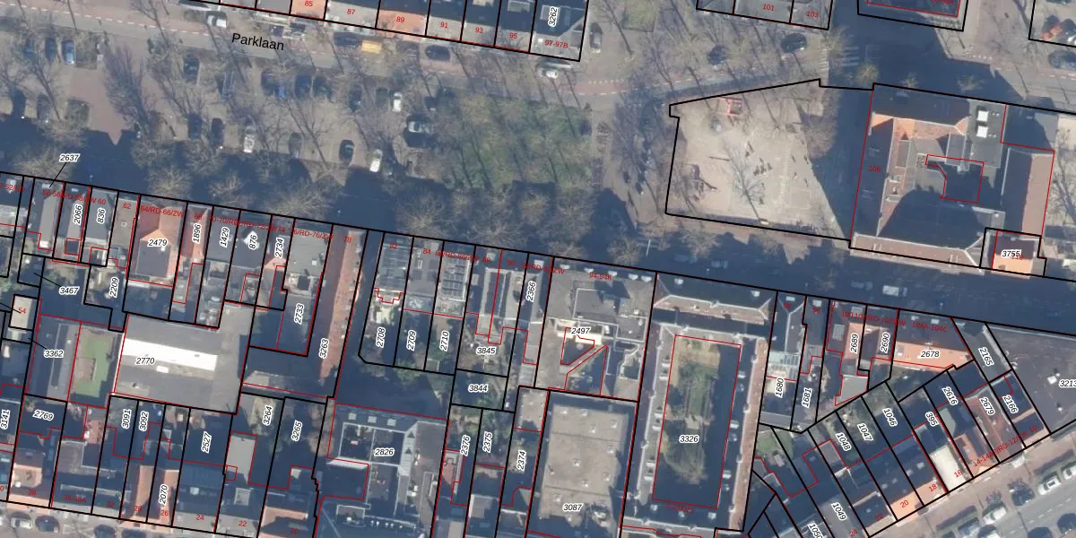Parklaan 92-ZW is gelegen op kadastraal perceel HLM01B2366. Deze kadastrale aanduiding is uniek en wordt gebruikt door het Kadaster om eigendomsrechten en andere zakelijke rechten vast te leggen. Het perceel maakt onderdeel uit van de kadastrale gemeente Haarlem.