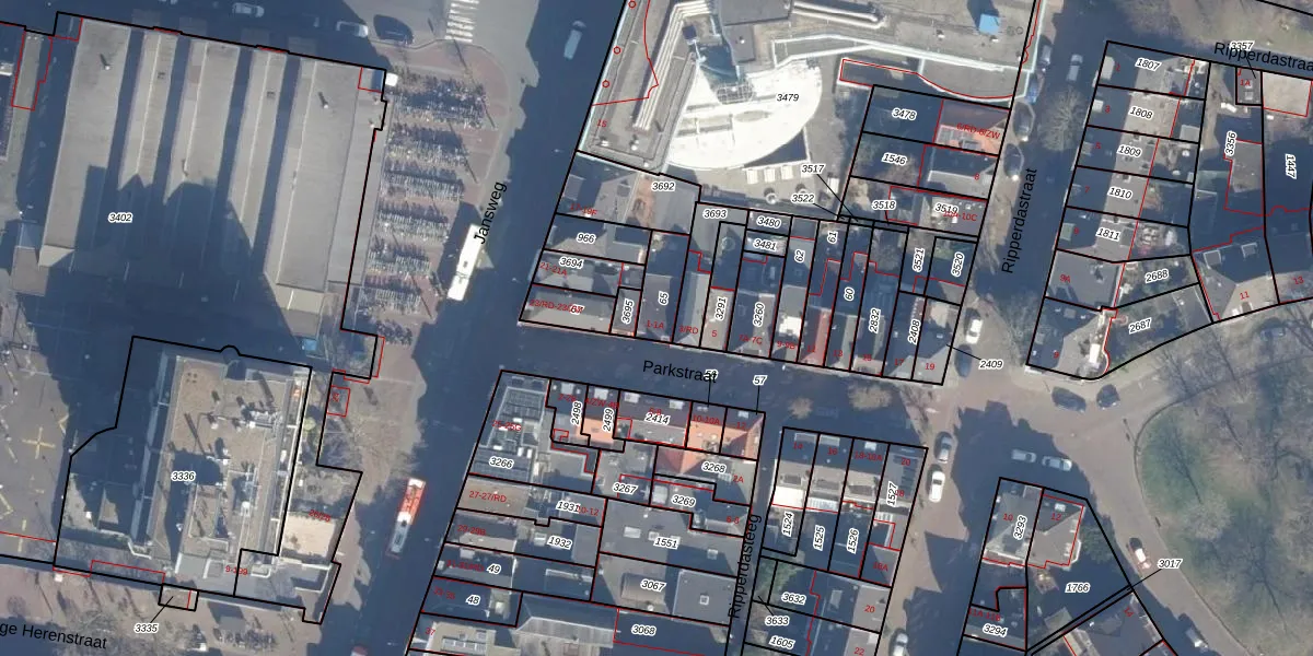 Het perceel waarop Parkstraat 1 staat heeft een oppervlakte van 102 m². Dit is een middelgroot perceel. De perceeloppervlakte wordt geregistreerd door het Kadaster. Gedetailleerde informatie over de maten van dit perceel kunt u vinden in het rapport Kadastrale kaart met maatvoering van Parkstraat 1.