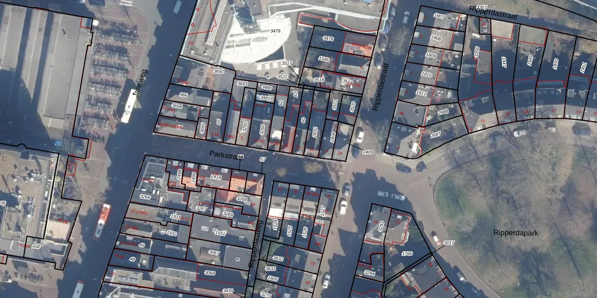 Het perceel waarop Parkstraat 13 staat heeft een oppervlakte van 86 m². Dit is een klein perceel. De perceeloppervlakte wordt geregistreerd door het Kadaster. Gedetailleerde informatie over de maten van dit perceel kunt u vinden in het rapport Kadastrale kaart met maatvoering van Parkstraat 13.