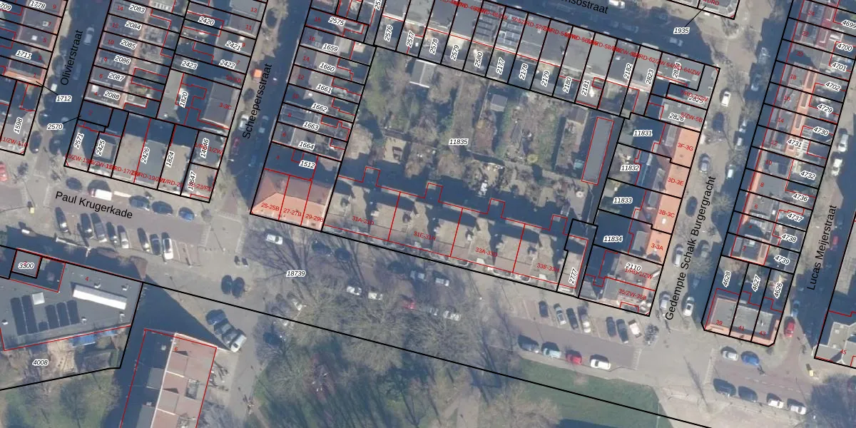 Het perceel waarop Paul Krugerkade 31-H staat heeft een oppervlakte van 2633 m². Dit is een zeer groot perceel. De perceeloppervlakte wordt geregistreerd door het Kadaster. Gedetailleerde informatie over de maten van dit perceel kunt u vinden in het rapport Kadastrale kaart met maatvoering van Paul Krugerkade 31-H.