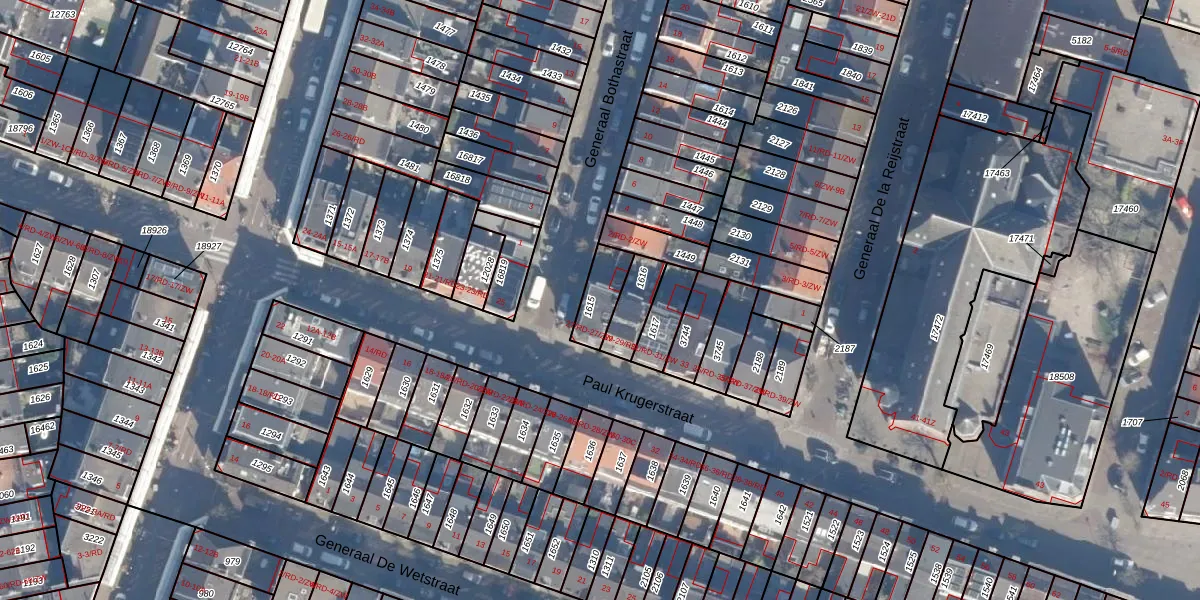 Het perceel waarop Paul Krugerstraat 27-RD staat heeft een oppervlakte van 98 m². Dit is een klein perceel. De perceeloppervlakte wordt geregistreerd door het Kadaster. Gedetailleerde informatie over de maten van dit perceel kunt u vinden in het rapport Kadastrale kaart met maatvoering van Paul Krugerstraat 27-RD.