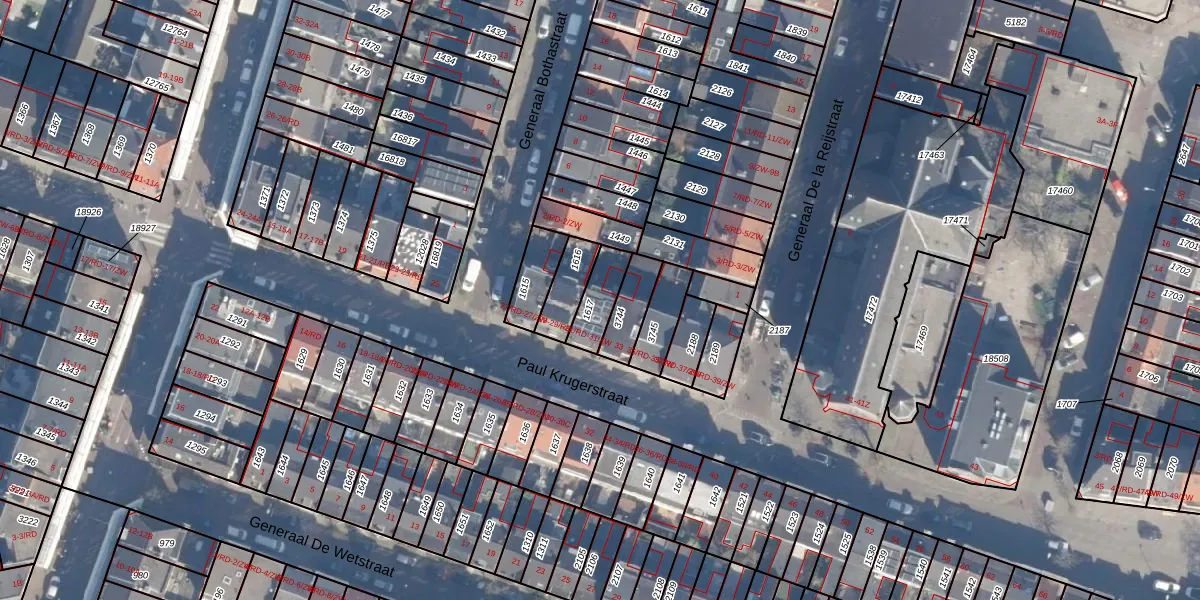 Het perceel waarop Paul Krugerstraat 31-RD staat heeft een oppervlakte van 99 m². Dit is een klein perceel. De perceeloppervlakte wordt geregistreerd door het Kadaster. Gedetailleerde informatie over de maten van dit perceel kunt u vinden in het rapport Kadastrale kaart met maatvoering van Paul Krugerstraat 31-RD.