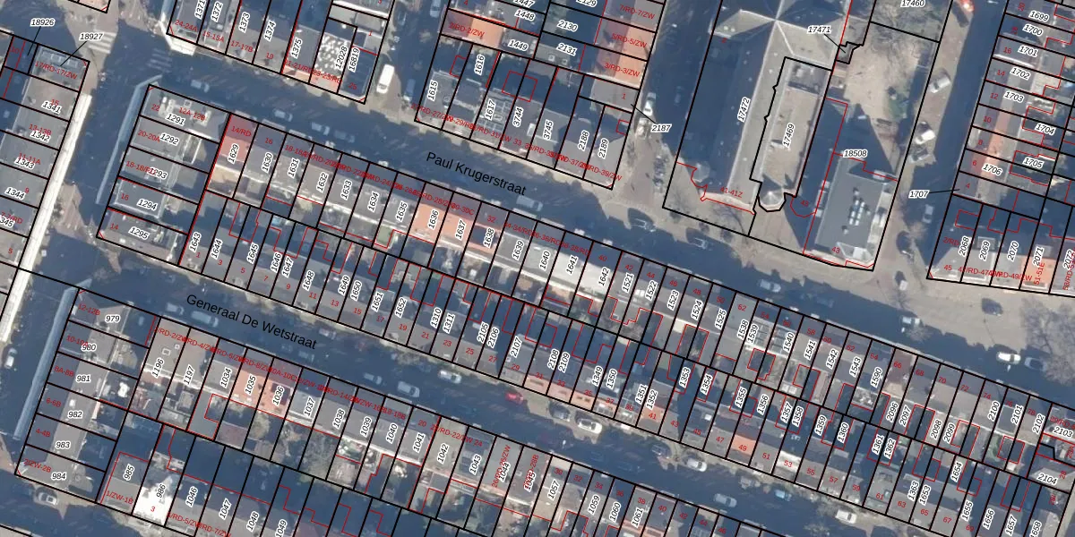 Het perceel waarop Paul Krugerstraat 36-RD staat heeft een oppervlakte van 83 m². Dit is een klein perceel. De perceeloppervlakte wordt geregistreerd door het Kadaster. Gedetailleerde informatie over de maten van dit perceel kunt u vinden in het rapport Kadastrale kaart met maatvoering van Paul Krugerstraat 36-RD.