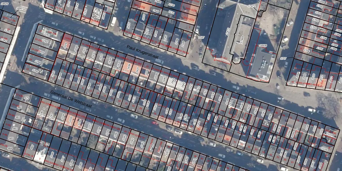 Het perceel waarop Paul Krugerstraat 38-RD staat heeft een oppervlakte van 83 m². Dit is een klein perceel. De perceeloppervlakte wordt geregistreerd door het Kadaster. Gedetailleerde informatie over de maten van dit perceel kunt u vinden in het rapport Kadastrale kaart met maatvoering van Paul Krugerstraat 38-RD.