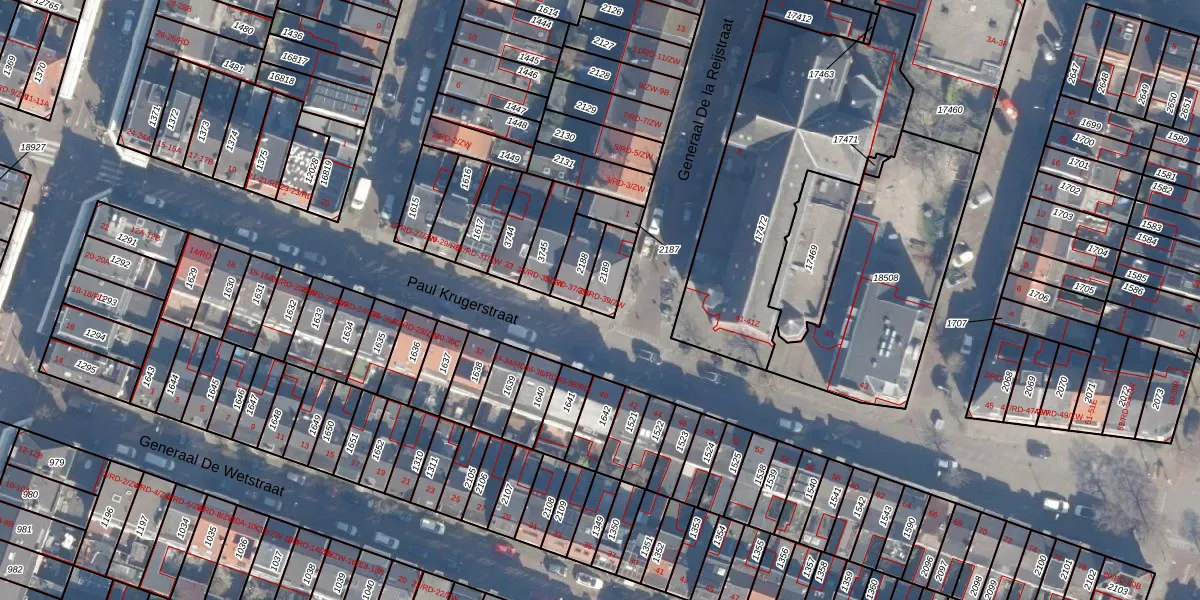 Het perceel waarop Paul Krugerstraat 39-ZW staat heeft een oppervlakte van 82 m². Dit is een klein perceel. De perceeloppervlakte wordt geregistreerd door het Kadaster. Gedetailleerde informatie over de maten van dit perceel kunt u vinden in het rapport Kadastrale kaart met maatvoering van Paul Krugerstraat 39-ZW.