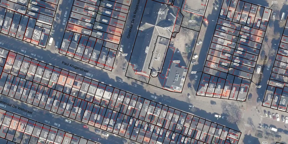 Het perceel waarop Paul Krugerstraat 41-H staat heeft een oppervlakte van 1136 m². Dit is een zeer groot perceel. De perceeloppervlakte wordt geregistreerd door het Kadaster. Gedetailleerde informatie over de maten van dit perceel kunt u vinden in het rapport Kadastrale kaart met maatvoering van Paul Krugerstraat 41-H.
