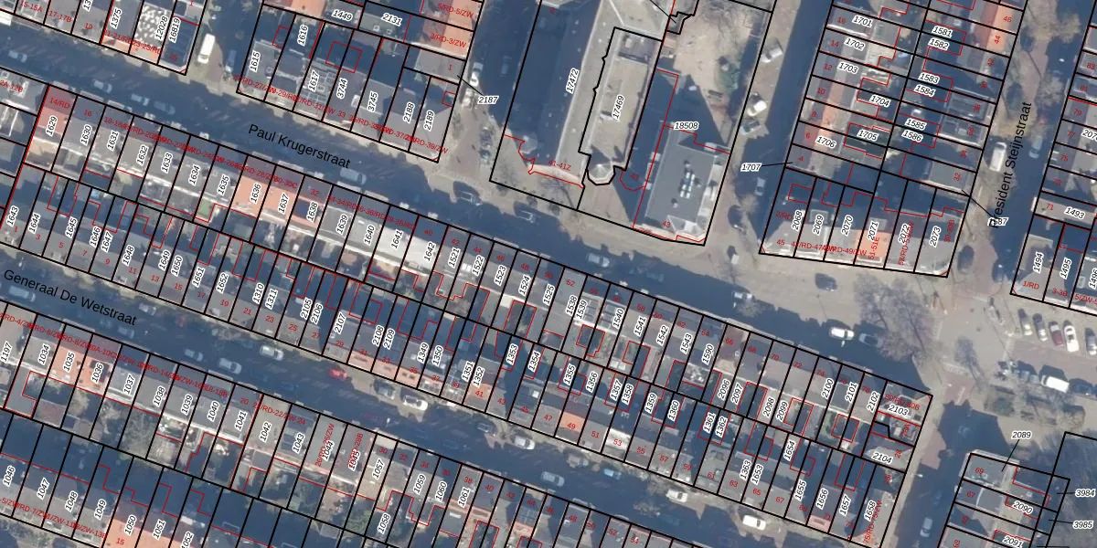 Het perceel waarop Paul Krugerstraat 50 staat heeft een oppervlakte van 69 m². Dit is een klein perceel. De perceeloppervlakte wordt geregistreerd door het Kadaster. Gedetailleerde informatie over de maten van dit perceel kunt u vinden in het rapport Kadastrale kaart met maatvoering van Paul Krugerstraat 50.