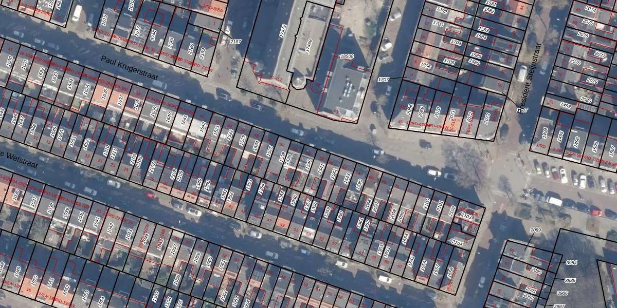 Het perceel waarop Paul Krugerstraat 56 staat heeft een oppervlakte van 67 m². Dit is een klein perceel. De perceeloppervlakte wordt geregistreerd door het Kadaster. Gedetailleerde informatie over de maten van dit perceel kunt u vinden in het rapport Kadastrale kaart met maatvoering van Paul Krugerstraat 56.