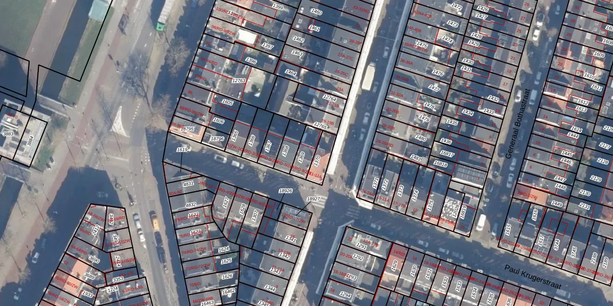 Het perceel waarop Paul Krugerstraat 9-RD staat heeft een oppervlakte van 96 m². Dit is een klein perceel. De perceeloppervlakte wordt geregistreerd door het Kadaster. Gedetailleerde informatie over de maten van dit perceel kunt u vinden in het rapport Kadastrale kaart met maatvoering van Paul Krugerstraat 9-RD.
