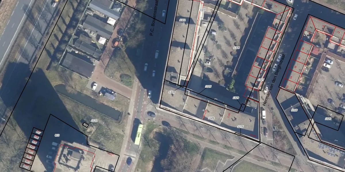 Het perceel waarop P.C. Boutensstraat 126-L staat heeft een oppervlakte van 845 m². Dit is een groot perceel. De perceeloppervlakte wordt geregistreerd door het Kadaster. Gedetailleerde informatie over de maten van dit perceel kunt u vinden in het rapport Kadastrale kaart met maatvoering van P.C. Boutensstraat 126-L.