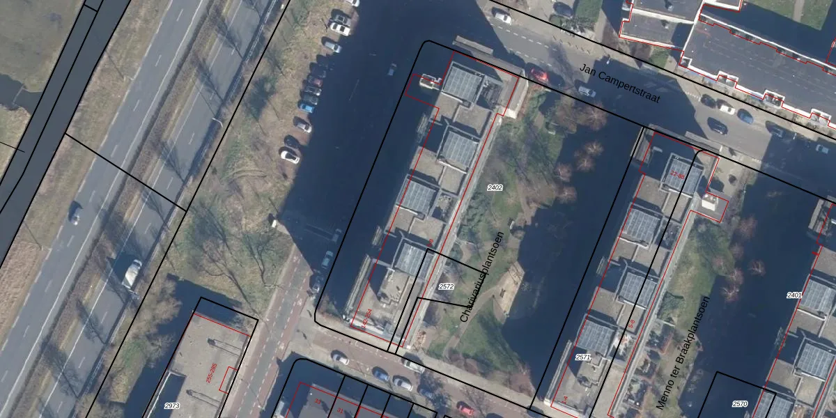 Het perceel waarop P.C. Boutensstraat 160 staat heeft een oppervlakte van 3930 m². Dit is een zeer groot perceel. De perceeloppervlakte wordt geregistreerd door het Kadaster. Gedetailleerde informatie over de maten van dit perceel kunt u vinden in het rapport Kadastrale kaart met maatvoering van P.C. Boutensstraat 160.