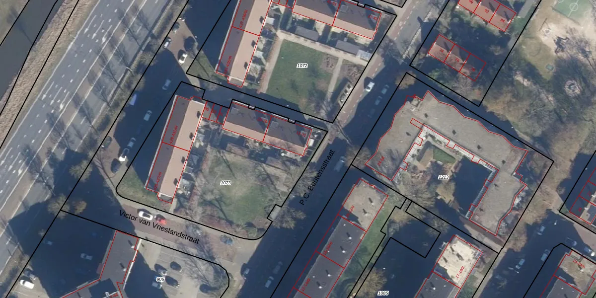 Het perceel waarop P.C. Boutensstraat 19 staat heeft een oppervlakte van 2185 m². Dit is een zeer groot perceel. De perceeloppervlakte wordt geregistreerd door het Kadaster. Gedetailleerde informatie over de maten van dit perceel kunt u vinden in het rapport Kadastrale kaart met maatvoering van P.C. Boutensstraat 19.