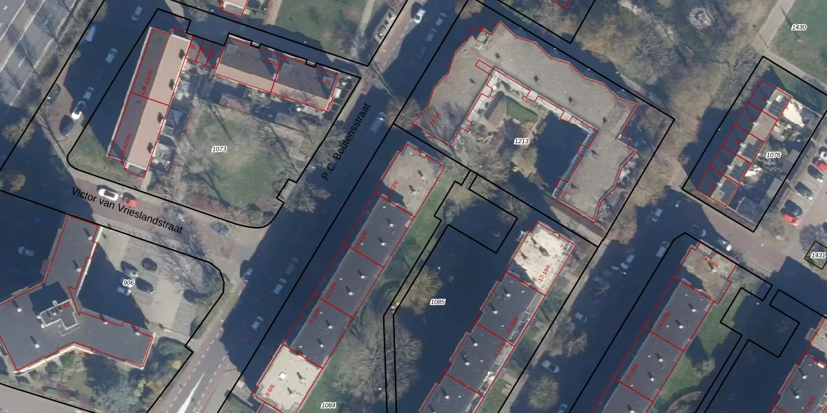 Het perceel waarop P.C. Boutensstraat 20-II staat heeft een oppervlakte van 2438 m². Dit is een zeer groot perceel. De perceeloppervlakte wordt geregistreerd door het Kadaster. Gedetailleerde informatie over de maten van dit perceel kunt u vinden in het rapport Kadastrale kaart met maatvoering van P.C. Boutensstraat 20-II.