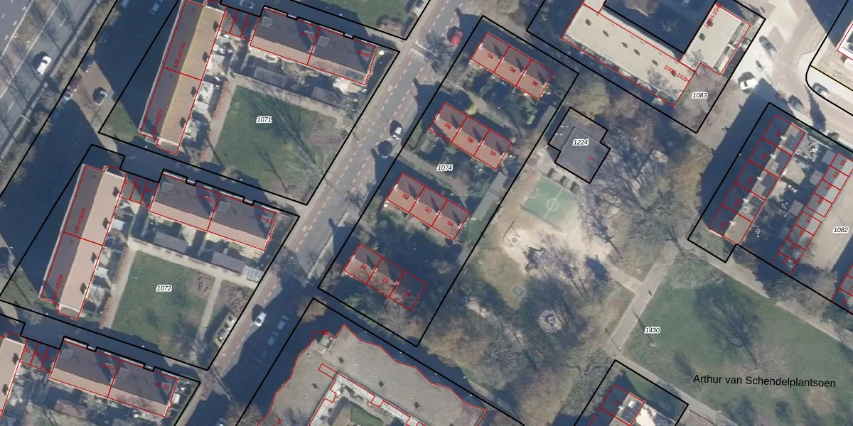 Het perceel waarop P.C. Boutensstraat 82 staat heeft een oppervlakte van 1989 m². Dit is een zeer groot perceel. De perceeloppervlakte wordt geregistreerd door het Kadaster. Gedetailleerde informatie over de maten van dit perceel kunt u vinden in het rapport Kadastrale kaart met maatvoering van P.C. Boutensstraat 82.