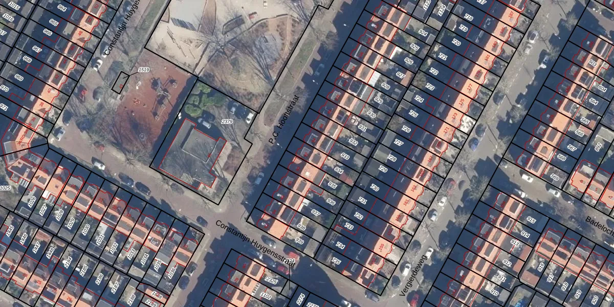 Gebruik de zoekbalk of klik op een perceel voor informatie over de adressen binnen dit perceel.
