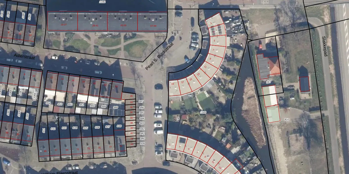 Het perceel waarop Pearl S. Buckstraat 19 staat heeft een oppervlakte van 4470 m². Dit is een zeer groot perceel. De perceeloppervlakte wordt geregistreerd door het Kadaster. Gedetailleerde informatie over de maten van dit perceel kunt u vinden in het rapport Kadastrale kaart met maatvoering van Pearl S. Buckstraat 19.