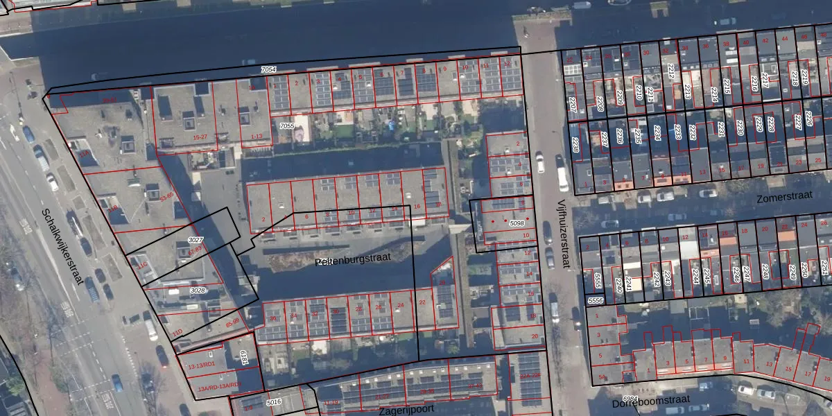 Peltenburgstraat 16 is gelegen op kadastraal perceel HLM01E7055. Deze kadastrale aanduiding is uniek en wordt gebruikt door het Kadaster om eigendomsrechten en andere zakelijke rechten vast te leggen. Het perceel maakt onderdeel uit van de kadastrale gemeente Haarlem.