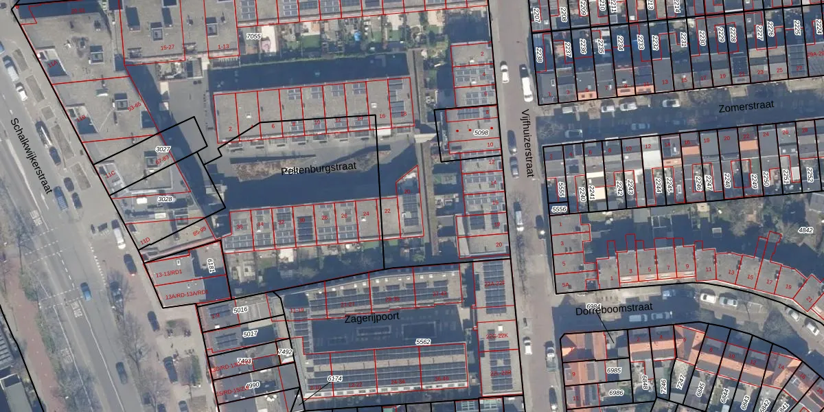 Peltenburgstraat 20 is gelegen op kadastraal perceel HLM01E7055. Deze kadastrale aanduiding is uniek en wordt gebruikt door het Kadaster om eigendomsrechten en andere zakelijke rechten vast te leggen. Het perceel maakt onderdeel uit van de kadastrale gemeente Haarlem.
