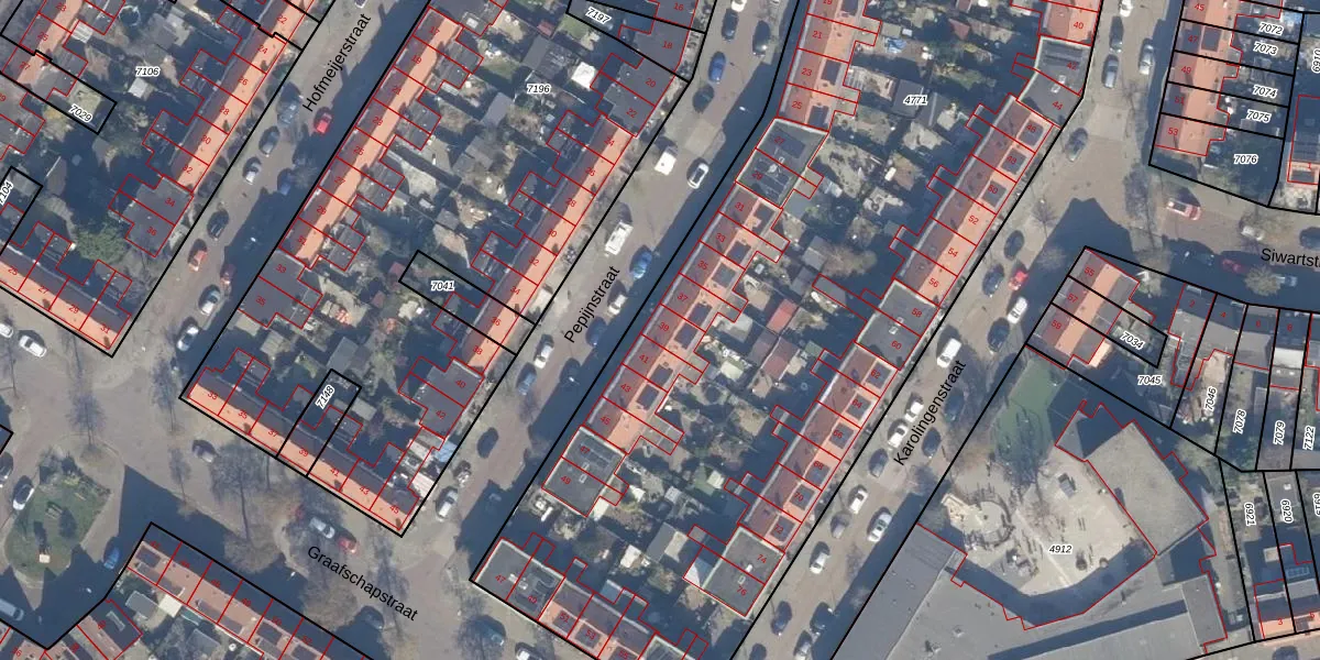 Het perceel waarop Pepijnstraat 39 staat heeft een oppervlakte van 7570 m². Dit is een zeer groot perceel. De perceeloppervlakte wordt geregistreerd door het Kadaster. Gedetailleerde informatie over de maten van dit perceel kunt u vinden in het rapport Kadastrale kaart met maatvoering van Pepijnstraat 39.