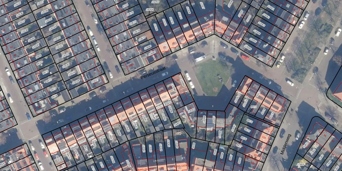 Gebruik de zoekbalk of klik op een perceel voor informatie over de adressen binnen dit perceel.