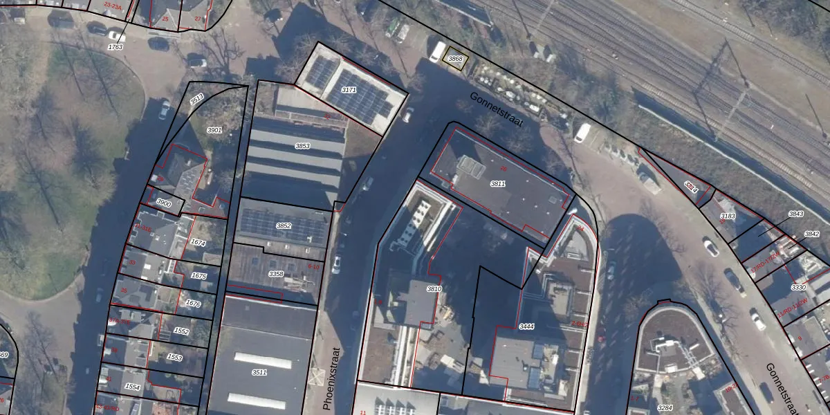 Het perceel waarop Phoenixstraat 1-A staat heeft een oppervlakte van 1315 m². Dit is een zeer groot perceel. De perceeloppervlakte wordt geregistreerd door het Kadaster. Gedetailleerde informatie over de maten van dit perceel kunt u vinden in het rapport Kadastrale kaart met maatvoering van Phoenixstraat 1-A.