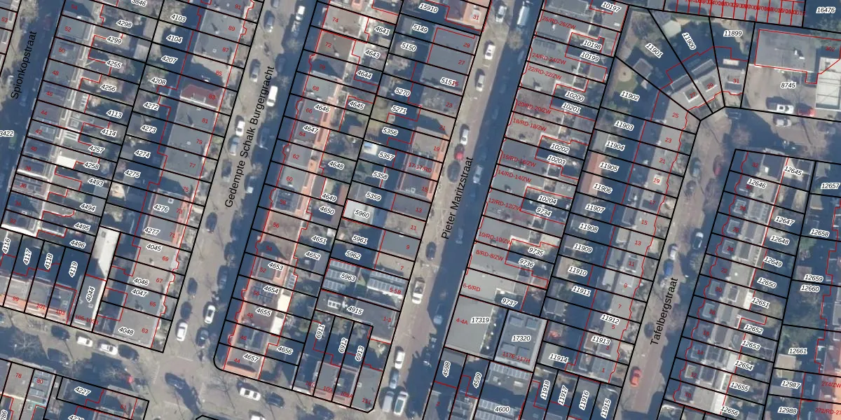 Het perceel waarop Pieter Maritzstraat 13 staat heeft een oppervlakte van 90 m². Dit is een klein perceel. De perceeloppervlakte wordt geregistreerd door het Kadaster. Gedetailleerde informatie over de maten van dit perceel kunt u vinden in het rapport Kadastrale kaart met maatvoering van Pieter Maritzstraat 13.