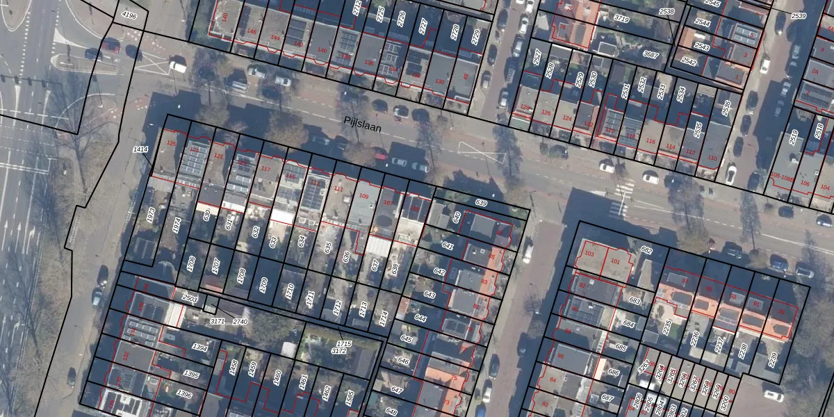 Gebruik de zoekbalk of klik op een perceel voor informatie over de adressen binnen dit perceel.