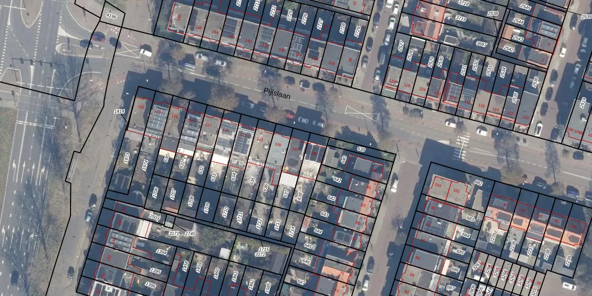 Gebruik de zoekbalk of klik op een perceel voor informatie over de adressen binnen dit perceel.