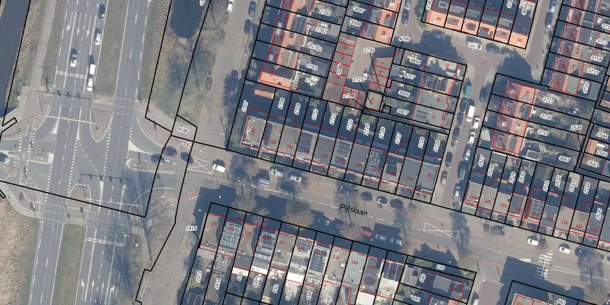Het perceel waarop Pijlslaan 142 staat heeft een oppervlakte van 141 m². Dit is een middelgroot perceel. De perceeloppervlakte wordt geregistreerd door het Kadaster. Gedetailleerde informatie over de maten van dit perceel kunt u vinden in het rapport Kadastrale kaart met maatvoering van Pijlslaan 142.