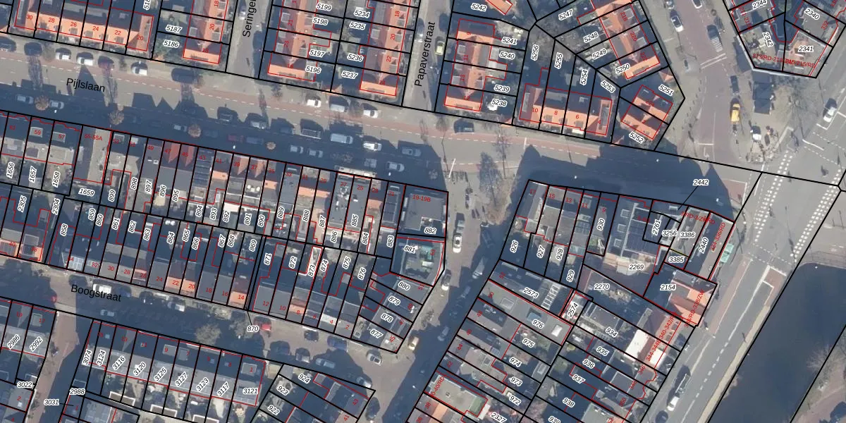 Het perceel waarop Pijlslaan 19-A staat heeft een oppervlakte van 119 m². Dit is een middelgroot perceel. De perceeloppervlakte wordt geregistreerd door het Kadaster. Gedetailleerde informatie over de maten van dit perceel kunt u vinden in het rapport Kadastrale kaart met maatvoering van Pijlslaan 19-A.