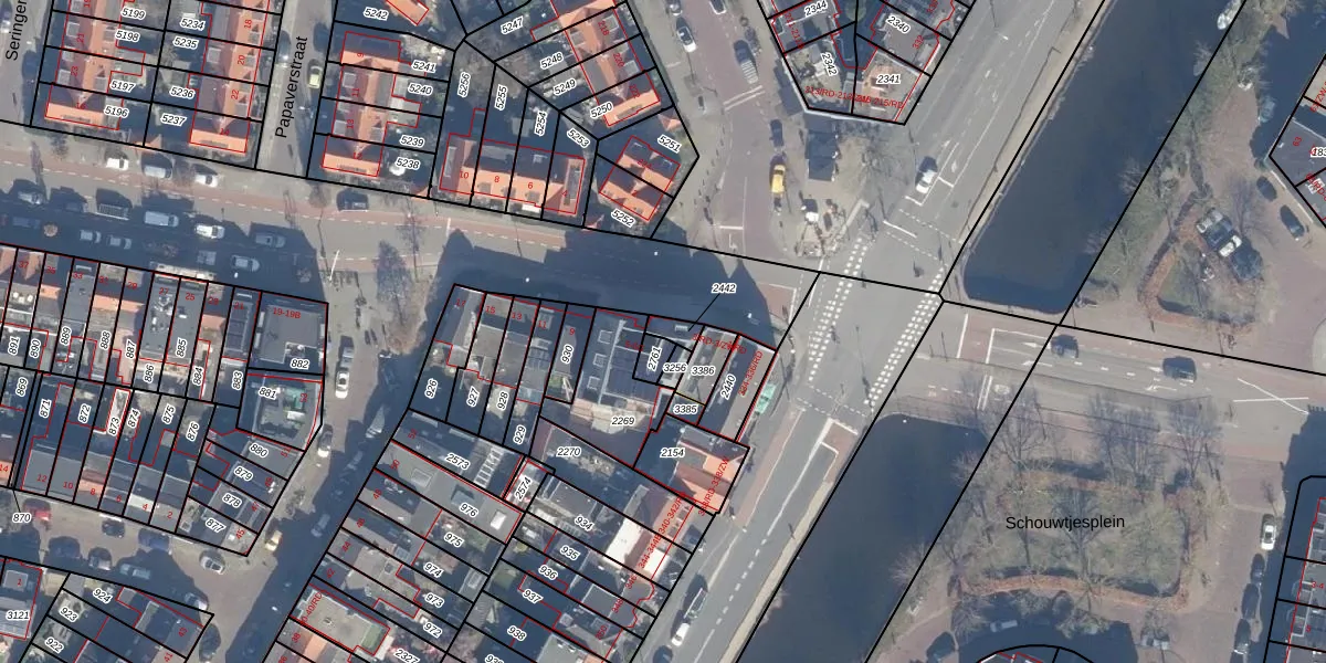 Het perceel waarop het adres ligt is HLM02-S-2442. De afkorting 'HLM02' staat voor kadastrale gemeente Haarlem. Het perceel is 28 m² groot. Dat is kleiner dan de gemiddelde perceeloppervlakte in Haarlem, dat op 1123,97 m² ligt. Het grootste perceel in de kadastrale gemeente is 46,4 ha. Het kleinste perceel heeft een oppervlakte van 0 m². Er zijn geen andere adressen aanwezig op het perceel. In de Basisregistratie Kadaster (BRK) werden de grenzen van het perceel geregistreerd op 13-10-2020.