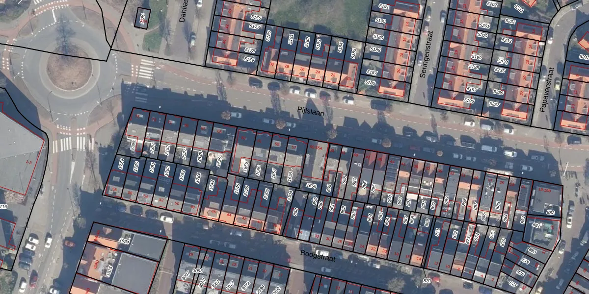 Het perceel waarop Pijlslaan 57 staat heeft een oppervlakte van 119 m². Dit is een middelgroot perceel. De perceeloppervlakte wordt geregistreerd door het Kadaster. Gedetailleerde informatie over de maten van dit perceel kunt u vinden in het rapport Kadastrale kaart met maatvoering van Pijlslaan 57.