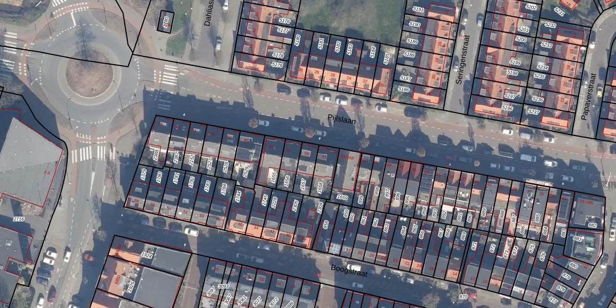 Het perceel waarop Pijlslaan 59 staat heeft een oppervlakte van 93 m². Dit is een klein perceel. De perceeloppervlakte wordt geregistreerd door het Kadaster. Gedetailleerde informatie over de maten van dit perceel kunt u vinden in het rapport Kadastrale kaart met maatvoering van Pijlslaan 59.