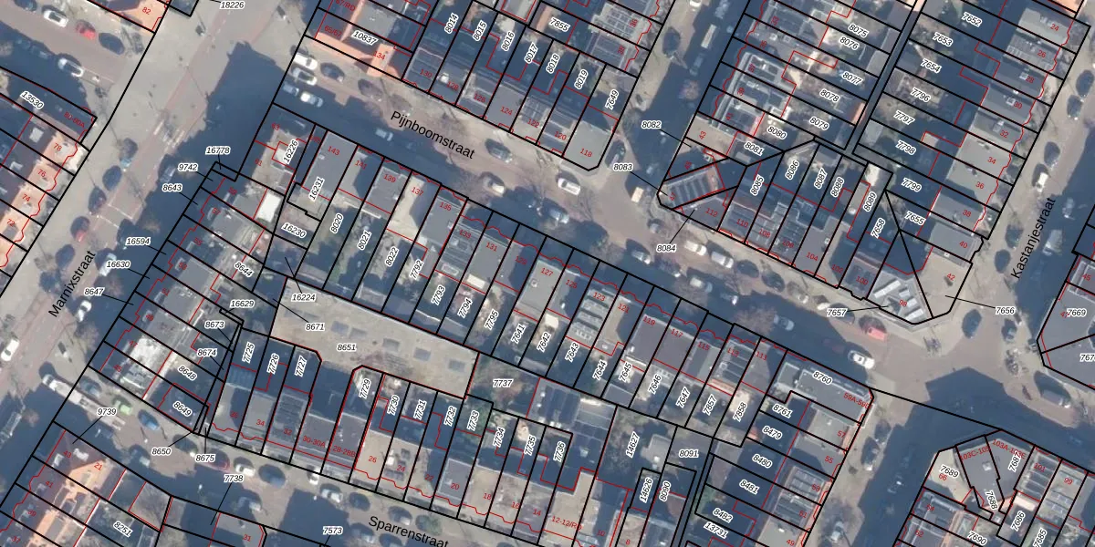 Pijnboomstraat 127 is gelegen op kadastraal perceel STN01B7641. Deze kadastrale aanduiding is uniek en wordt gebruikt door het Kadaster om eigendomsrechten en andere zakelijke rechten vast te leggen. Het perceel maakt onderdeel uit van de kadastrale gemeente Schoten.