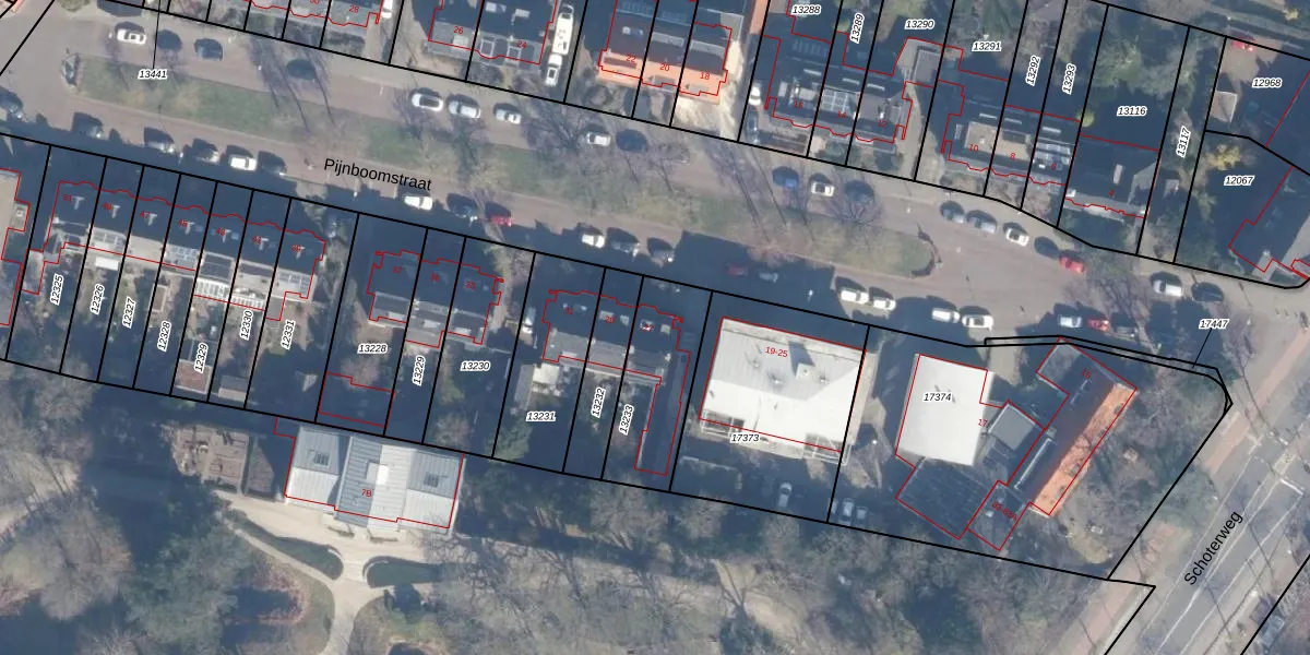 Pijnboomstraat 27 is gelegen op kadastraal perceel STN01B13233. Deze kadastrale aanduiding is uniek en wordt gebruikt door het Kadaster om eigendomsrechten en andere zakelijke rechten vast te leggen. Het perceel maakt onderdeel uit van de kadastrale gemeente Schoten.