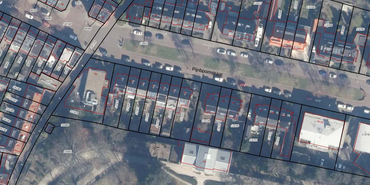 Het perceel waarop Pijnboomstraat 39 staat heeft een oppervlakte van 355 m². Dit is een groot perceel. De perceeloppervlakte wordt geregistreerd door het Kadaster. Gedetailleerde informatie over de maten van dit perceel kunt u vinden in het rapport Kadastrale kaart met maatvoering van Pijnboomstraat 39.