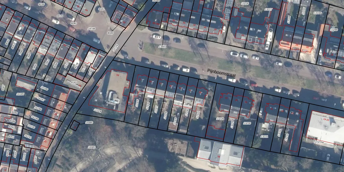 Het perceel waarop Pijnboomstraat 45 staat heeft een oppervlakte van 189 m². Dit is een middelgroot perceel. De perceeloppervlakte wordt geregistreerd door het Kadaster. Gedetailleerde informatie over de maten van dit perceel kunt u vinden in het rapport Kadastrale kaart met maatvoering van Pijnboomstraat 45.