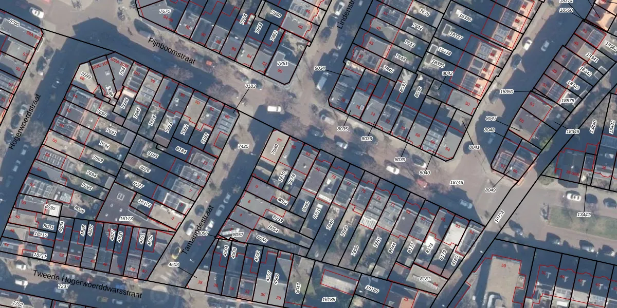 Het perceel waarop Pijnboomstraat 83 staat heeft een oppervlakte van 92 m². Dit is een klein perceel. De perceeloppervlakte wordt geregistreerd door het Kadaster. Gedetailleerde informatie over de maten van dit perceel kunt u vinden in het rapport Kadastrale kaart met maatvoering van Pijnboomstraat 83.