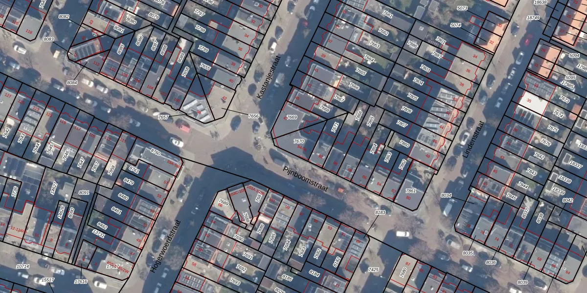 Het perceel waarop Pijnboomstraat 96 staat heeft een oppervlakte van 118 m². Dit is een middelgroot perceel. De perceeloppervlakte wordt geregistreerd door het Kadaster. Gedetailleerde informatie over de maten van dit perceel kunt u vinden in het rapport Kadastrale kaart met maatvoering van Pijnboomstraat 96.