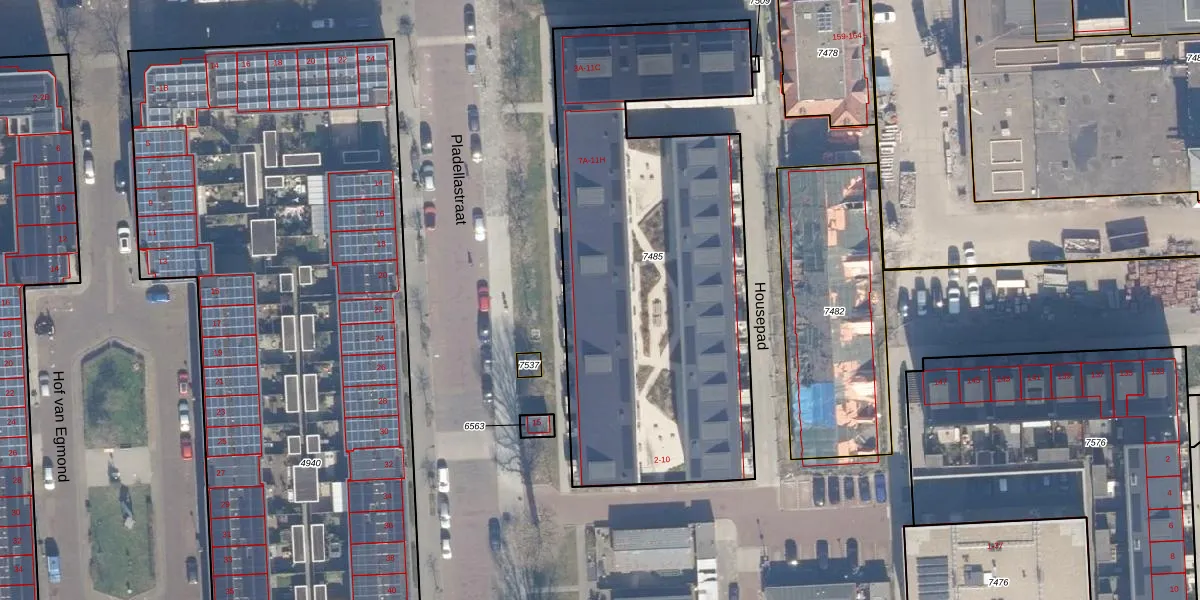 Pladellastraat 11-F is gelegen op kadastraal perceel HLM01E7485. Deze kadastrale aanduiding is uniek en wordt gebruikt door het Kadaster om eigendomsrechten en andere zakelijke rechten vast te leggen. Het perceel maakt onderdeel uit van de kadastrale gemeente Haarlem.