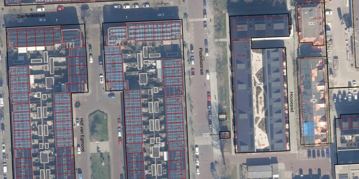 Pladellastraat 20 is gelegen op kadastraal perceel HLM01E4940. Deze kadastrale aanduiding is uniek en wordt gebruikt door het Kadaster om eigendomsrechten en andere zakelijke rechten vast te leggen. Het perceel maakt onderdeel uit van de kadastrale gemeente Haarlem.