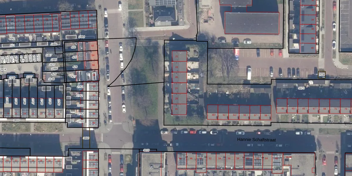 Pladellastraat 27 is gelegen op kadastraal perceel HLM01E5973. Deze kadastrale aanduiding is uniek en wordt gebruikt door het Kadaster om eigendomsrechten en andere zakelijke rechten vast te leggen. Het perceel maakt onderdeel uit van de kadastrale gemeente Haarlem.