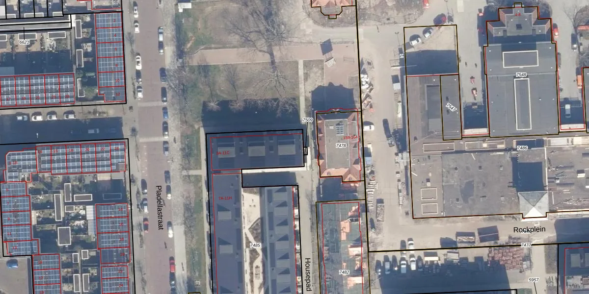 Pladellastraat 5-F is gelegen op kadastraal perceel HLM01E7485. Deze kadastrale aanduiding is uniek en wordt gebruikt door het Kadaster om eigendomsrechten en andere zakelijke rechten vast te leggen. Het perceel maakt onderdeel uit van de kadastrale gemeente Haarlem.