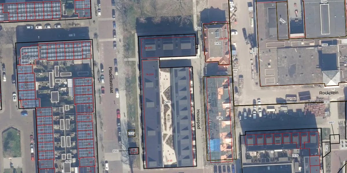 Pladellastraat 7-T is gelegen op kadastraal perceel HLM01E7485. Deze kadastrale aanduiding is uniek en wordt gebruikt door het Kadaster om eigendomsrechten en andere zakelijke rechten vast te leggen. Het perceel maakt onderdeel uit van de kadastrale gemeente Haarlem.