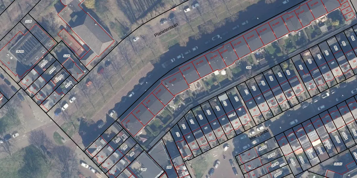 Het perceel waarop Planetenlaan 12-II staat heeft een oppervlakte van 3633 m². Dit is een zeer groot perceel. De perceeloppervlakte wordt geregistreerd door het Kadaster. Gedetailleerde informatie over de maten van dit perceel kunt u vinden in het rapport Kadastrale kaart met maatvoering van Planetenlaan 12-II.