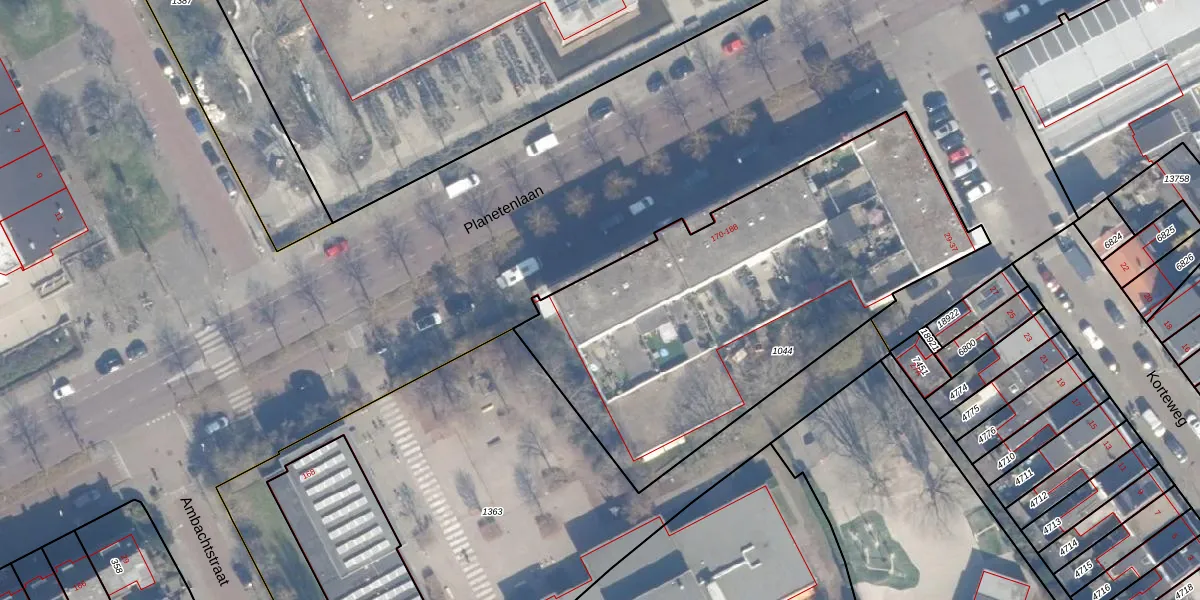 Het perceel waarop Planetenlaan 170 staat heeft een oppervlakte van 2181 m². Dit is een zeer groot perceel. De perceeloppervlakte wordt geregistreerd door het Kadaster. Gedetailleerde informatie over de maten van dit perceel kunt u vinden in het rapport Kadastrale kaart met maatvoering van Planetenlaan 170.