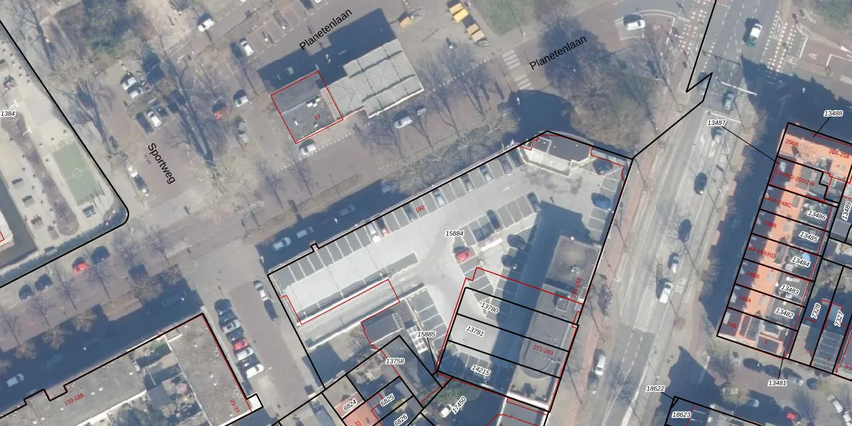 Het perceel waarop Planetenlaan 190 staat heeft een oppervlakte van 2597 m². Dit is een zeer groot perceel. De perceeloppervlakte wordt geregistreerd door het Kadaster. Gedetailleerde informatie over de maten van dit perceel kunt u vinden in het rapport Kadastrale kaart met maatvoering van Planetenlaan 190.