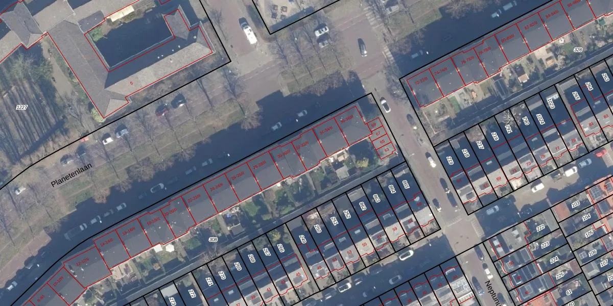 Het perceel waarop Planetenlaan 32-I staat heeft een oppervlakte van 3633 m². Dit is een zeer groot perceel. De perceeloppervlakte wordt geregistreerd door het Kadaster. Gedetailleerde informatie over de maten van dit perceel kunt u vinden in het rapport Kadastrale kaart met maatvoering van Planetenlaan 32-I.