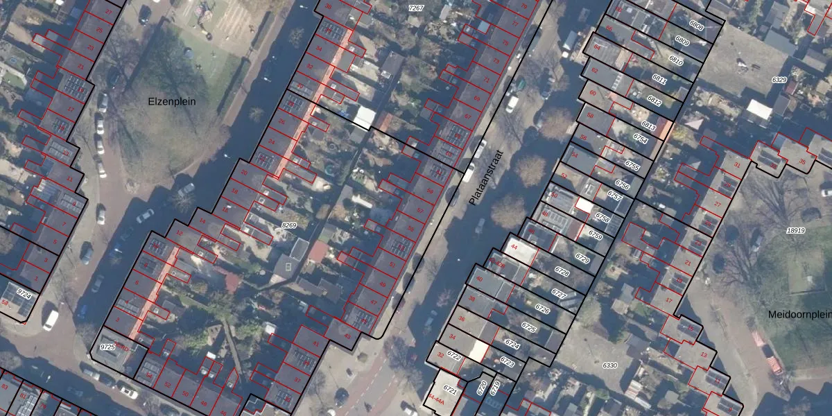 Het perceel waarop Plataanstraat 57 staat heeft een oppervlakte van 3769 m². Dit is een zeer groot perceel. De perceeloppervlakte wordt geregistreerd door het Kadaster. Gedetailleerde informatie over de maten van dit perceel kunt u vinden in het rapport Kadastrale kaart met maatvoering van Plataanstraat 57.